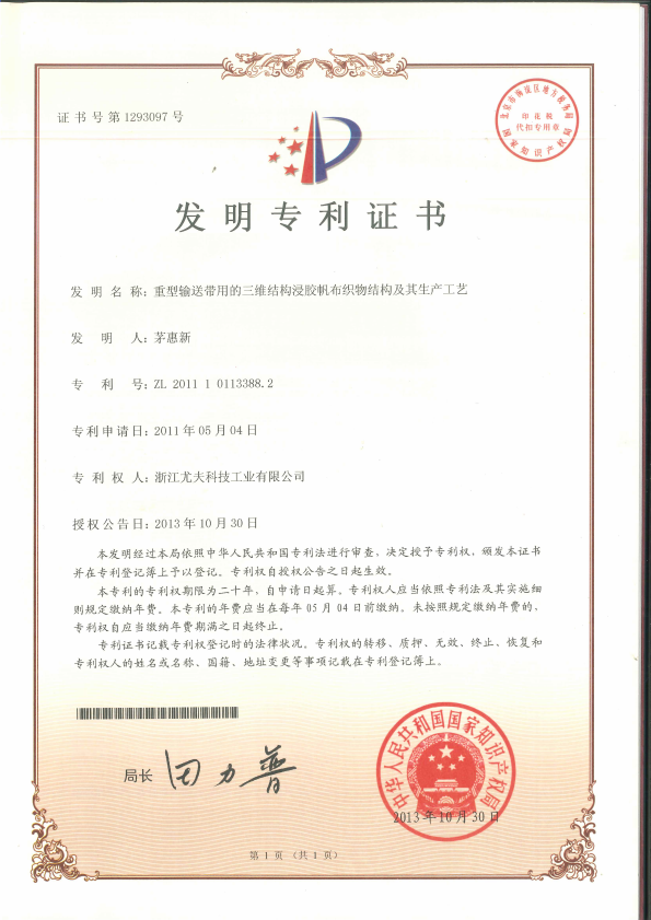 發明-重型輸送帶用的三維結構浸膠帆布織物結構及其生產工藝