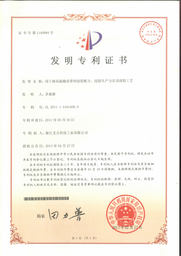 發明-用于耐高溫輸送帶的浸膠配方、浸膠生產方法及浸膠工藝