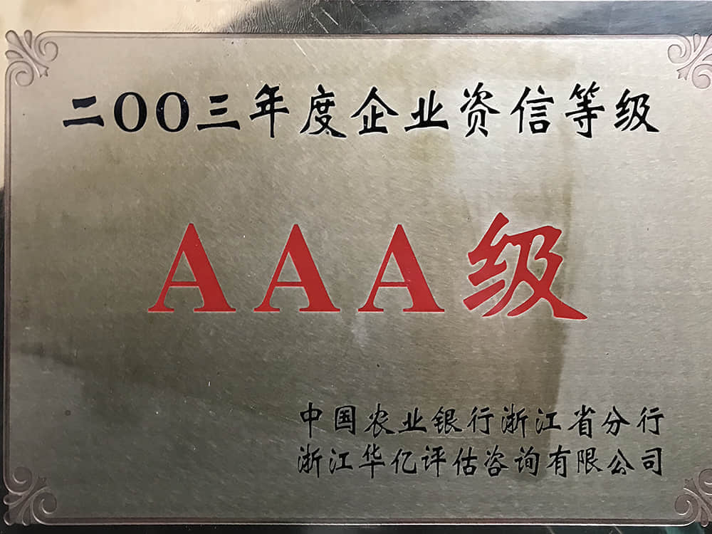 2003年度企業(yè)資信等級(jí)AAA級(jí)