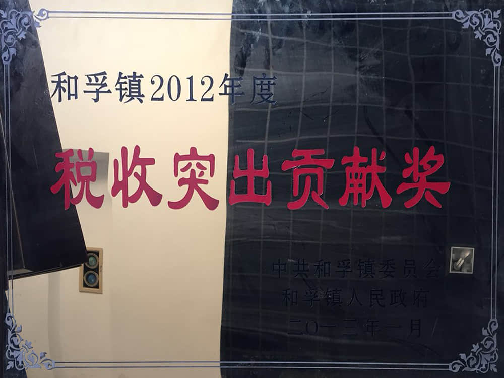 2012和孚鎮年度稅收突出貢獻獎