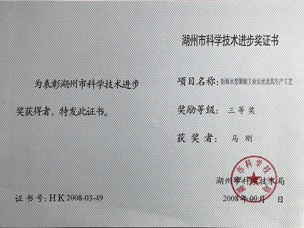 2008湖州市科技進步獎三等獎-馬剛
