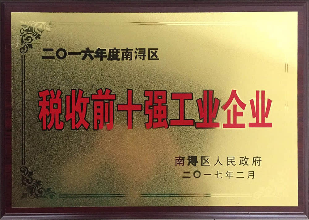 2016年度南潯區(qū)稅收前十強(qiáng)企業(yè)